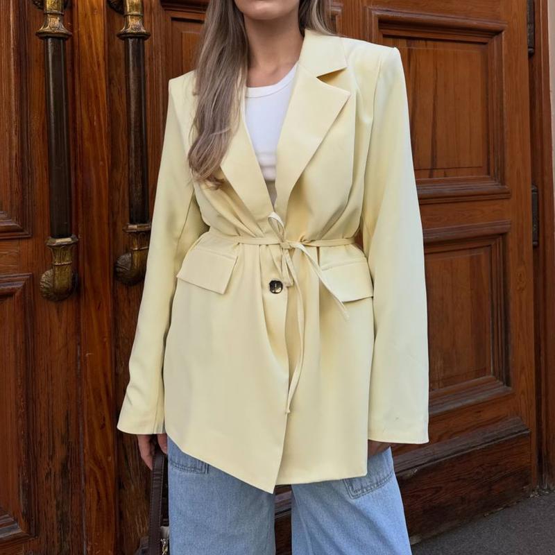 #Поджак Артикул: 856-515 Цвет: сливочное масло, шоколад, графит, черный Размер: универсальный Материал: костюмка + подкладка Удлиненный с прямым кроем, в сочетании с тонким поясом