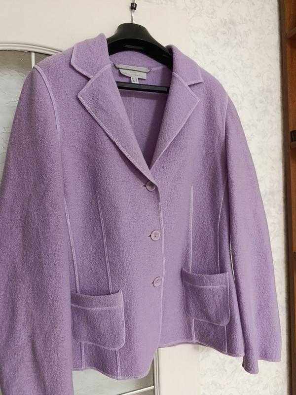 жакет, 100% шерсть, нежного сиреневого цвета. ПОГ 50см, ПОТ 45см, ПОС 53см, плечо 12см, длина рукава 62см, длина изделия 63см.