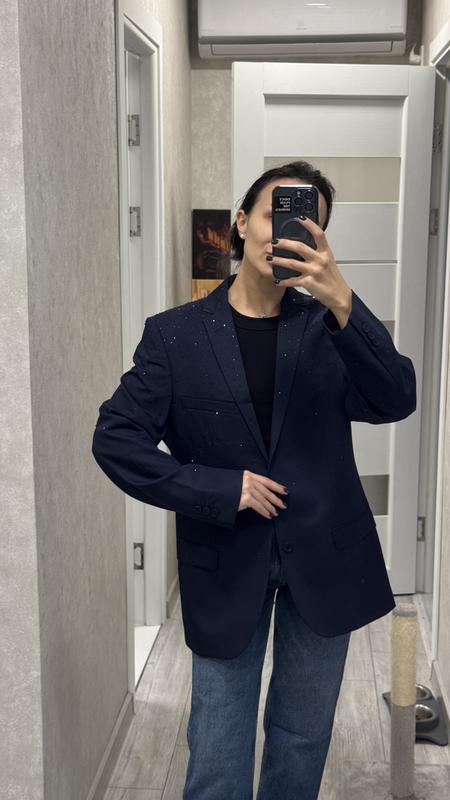 Пиджак в стразах. Ручная работа Стрази-скло На хс-с С мужского плеча Цвет - синий Замеры-по запросу