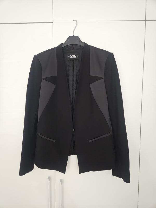 Черный пиджак, прителаний, оригинальный, застегивается на один крючок. Мягкая ткань (коттон + НЕ блестящий тип атлас) длина 59 рукав 61 пог 44
