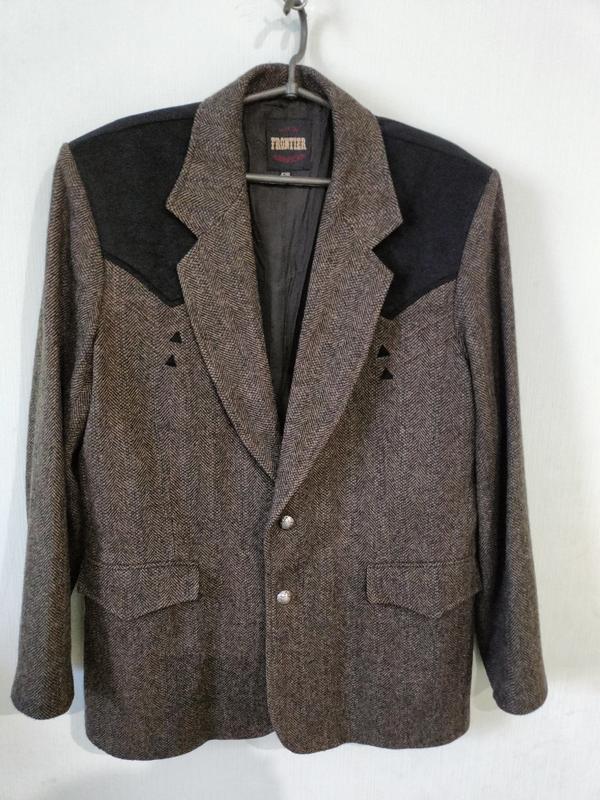 В идеальном состоянии жакет на мужчину 50-52р. Длина по спинке до низа 80см, длина рукава с плечом 82см, ширина подмышками 58см, ширина по плечам 48см. Стан новый.