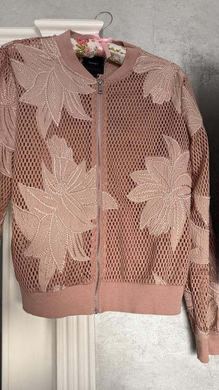 Классный модный бомбер, ажурный, сетка с нашивкой, хорошо держит форму, красивый цвет. Размер М-Л. Ог 54, длина 54, рукав 64.