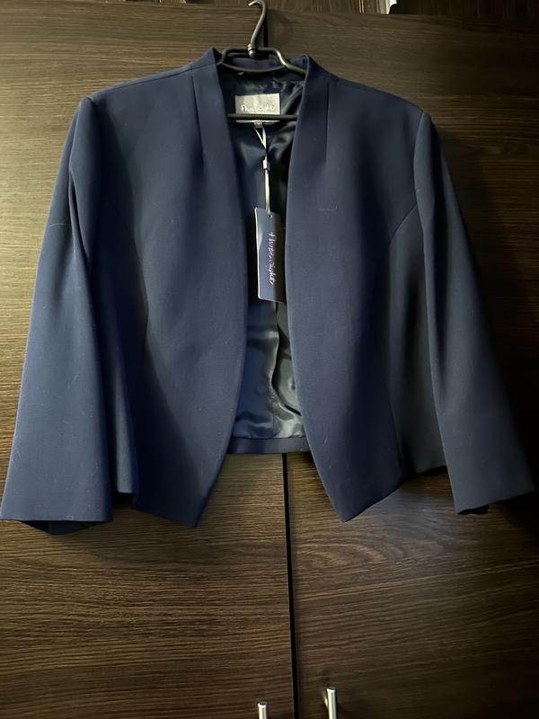 Пів обхват плечей 43 Пів обхват грудей 54 Пів обхват талії 52 Пів обхват низу 52 Довжина рукава 50 Довжина виробу 55 Без карманів і застібки,на підкладці) Глибокий синій колір)