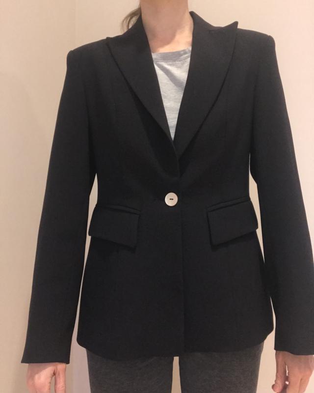Піджак Adiata злегка приталений середньої довжини, колір темно-синій. Розмір 34. Склад верху 44% вовна, 53% поліестр, 3% еластан. Підкладка ацетат. Стан ідеальний, посадка дуже комфортна. Заміри: Плечі 42 Підпахви 44 Талія 38 Ширина внизу 51 Довжина по спинці 67 Довжина рукава 60