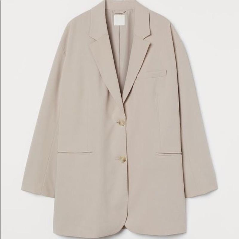 Трендовий жіночий подовжений бежевий оверсайз піджак H&M Розмір ХС Стан ідеальний Довжина 78 ПОГ 55 Плечі 48 Рукав 56 64% поліестер, 30% віскоза, 6% еластан