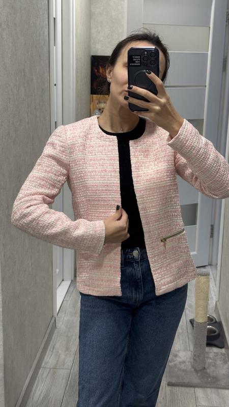Жакет твидовый На Хс, С Бело-розовый С подкладом и карманами Золотая фурнитура