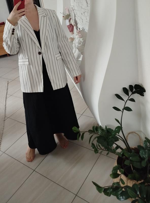 Блейзер пиджак молочный в черную полоску