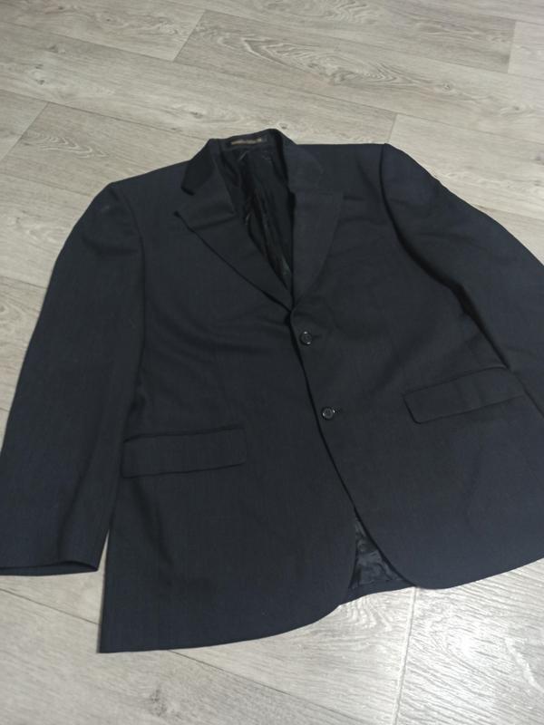 Женский пиджак черного цвета (с серой нитью) типа графит, но выглядит как черный. Карманы рабочие, позади два разреза,е подплечника, плотная качественная ткань. Длина 75