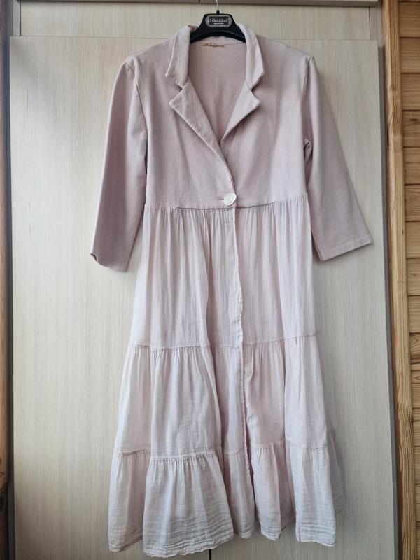 полуобъем груди 45 см полуобъем талия 45 см длина 95 см длина рукава 40 см застегивается на один гудщик, верх - трикотаж