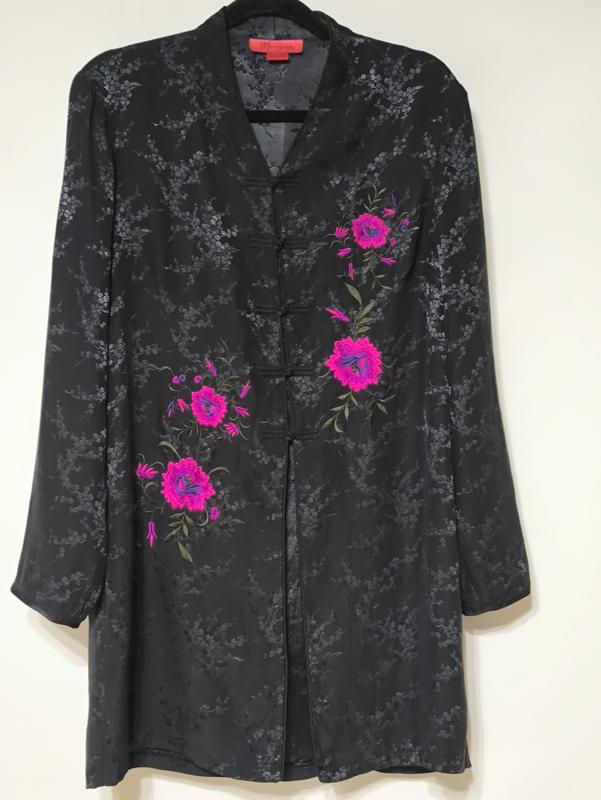 Не трендовая вещь. Не мас-маркет. Это носима арт-рич в восточной эстетике. КимONO выполнен из шелковой жаккардовой ткани с глубокой фактурой и декоративной вышивкой ручного вида. Изделие обладает спокойным, уравновешенным силуэтом и создано не для спешки, а для состояния. Не пиджак для каждого дня. ▫️ 55% натуральный шелк ▫️ 45% вискоза ▫️ Жакардова тканина ▫️ Декоративные застежки в восточном стиле ▫️ Арт-вишивка ▫️ Без подкладки Это вещь для: - галерейных образов — вечерних выходов – коллекционного гардероба — ценителей арт-эстетики и slow fashion Стан идеален. Рич с характером. Размер по бирке: 14 (UK) В пересчете: UK 14 = EU 42 = L ориентировочно UA 48