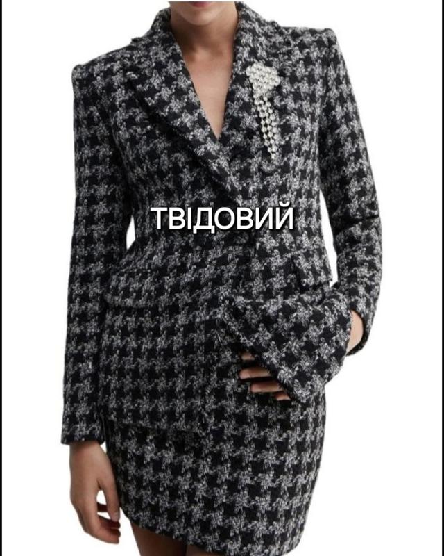 Указан s, твидовий. В состав входит хлопок. Твид. Прямой фасон. V-образный вырез горловины с лацканами. Длинные рукава с пуговицами на манжетах. Спереди два прорезных кармана с клапаном. Спереди застежка на пуговицу. Подкладка есть..