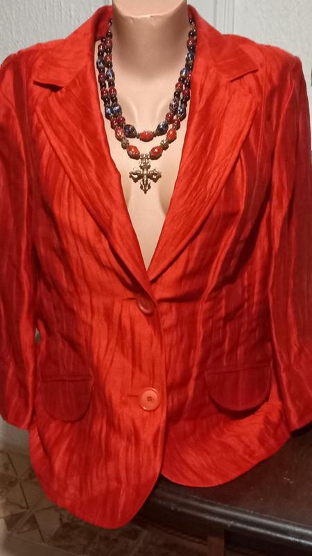 очень красивый кукольный жакет,цвет не такой яркий как на фото, красный в бордовый оттенок, длина 59, рукав 48, 3/4, об100см,плечи 40, есть карманы, также смотрите другие Мои товары, есть много интересного.