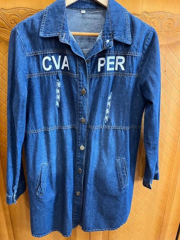 Джинсовий піджак подовжений -синього кольору Розмір хл Ог-53 Об-55 Довжина -80 (Одягався 2 рази)