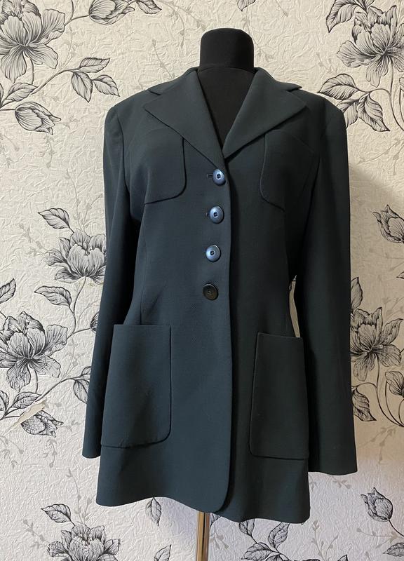 Жакет в ідеальному стані. Колір максимально приближений до кольору вказаному на останньому фото, лиш трохи темніший. Склад тканини на фото: 100% шерсть. Підкладка: 66% ацетат; 34% віскоза. Країна виробник Італія. Довжина жакету 77 см Довжина рукава 64 см Ширина плечей 45 см ПОГ під пахвами 52 см ПОТ 45,5 см ПО знизу 60 см. Повернення немає. Доставка за рахунок покупця