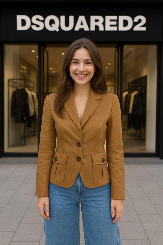Стильний та лаконічний жакет від Dsquared2, виготовлений в Італії. Модель має фірмовий приталений силует, якісний крій та благородний карамельно-верблюжий відтінок. Розмір: 44 приблизно відповідає S–M Стан: відмінний, без слідів носіння Переваги моделі: ідеально тримає форму приємна щільна тканина, комфортна в носінні універсальний колір, який легко комбінується якісне італійське пошиття