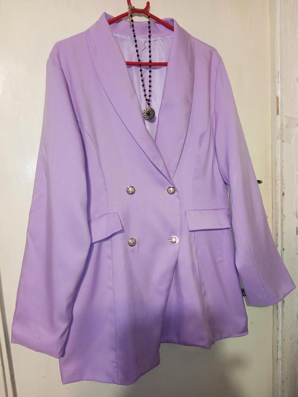 Нарядный двубортный лиловый пиджак или платье-пиджак? с золотыми пуговицами батал