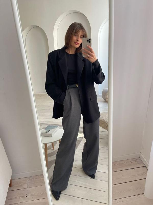 Черный удлиненный оверсайз пиджак, состояние идеальное, имеет запасные пуговицы. По наборке на рост 175 см. В составе: 67% полиэстр, 29% вискозы, 4% эластана.