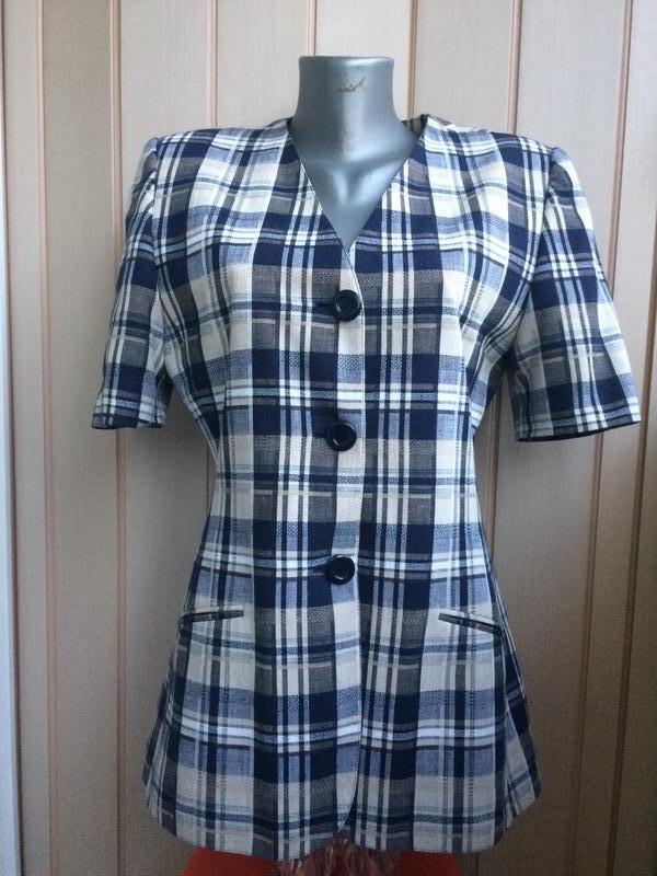 Состояние новой вещи. Отличный крой, подчеркивает фигуру. Есть подплечники (вшиты под подкладкой. Ткань приятная (под рогожку), мягкая, тонкая, но хорошо держит форму. Смотриться классно и дорого. Множество вариантов нОски. С джинсами, лосинами, гольф пододеть. Реальный цвет на фото 2. Производство Южная Африка. Плечи - 42 см Длина по спинке - 71.5 см Рукав - 29 см. ПОГ - 49 см, максимум на грудь 92, может - 93 см ПОТ - 43 см , на талию максимум 70-72 см (с учётом подкладки и ткань совсем не тянется. Замеры сняты в лежачем застёгнутом состоянии.
