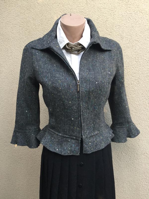 Винтаж,легкий жакет,пиджак,куртка шерсть,рюши,воланы,баска,люкс бренд,оригинал