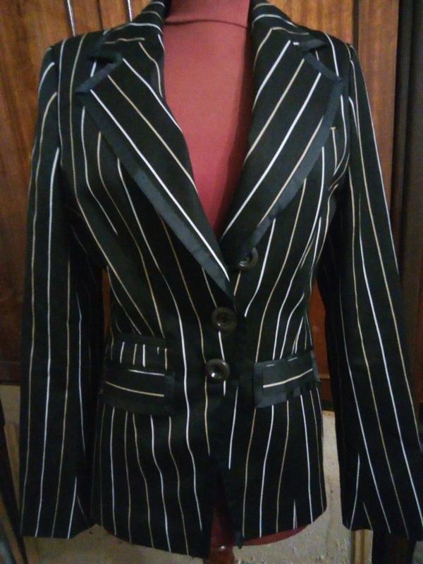 Жакет Atmosphere Размер 12 (евроразмер 40) Отличное состояние, без изъянов Карманы. Пиджак на подкладке Цвет черный в белую и бежевую полоску Мерки: длина 66см плечи 37см рукав от плеча 64см ПОГ 50см ПОБ 53см ПОТ 43