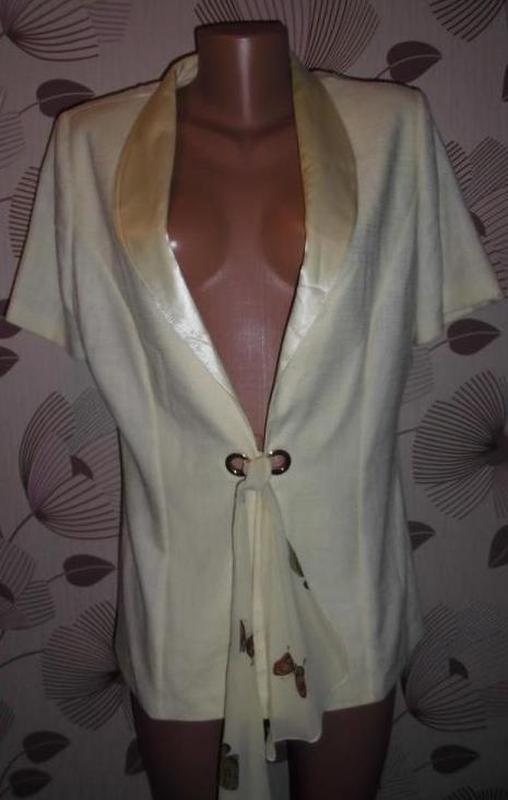 Пиджак с лентой женский Цвет желтый Размер 46 Ткань вискоза Длина рукава 20 см,ПОГ 50 см,ПОТ 46 см,длина 75 см.Обмена нет