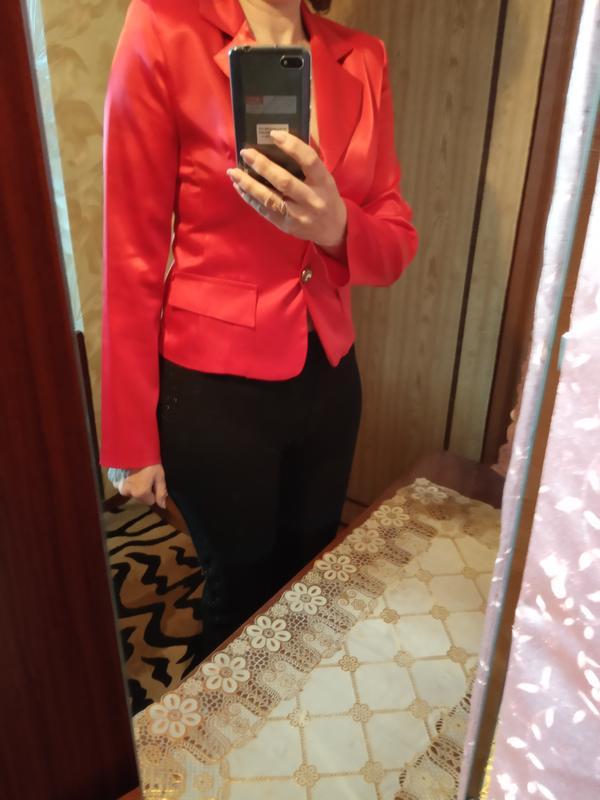 очень красивый и пиджак с его кроем и цвет,материал-атлас,поверьте очень красиво смотрится.Утеряна одна пуговица,а так никаких недостатков больше нет.Размер 44-46.