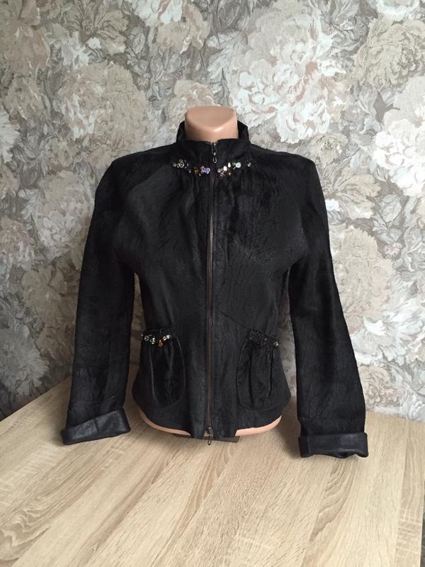 Harmanli М піджак, жакет, куртка/ кожа пиджак, курточка. Оздоблений камінцями. стан дуже хороший. Довжина виробу 52 см. Рукав реглан.