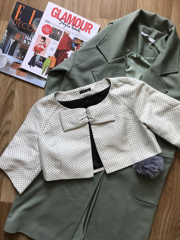 Продам укорочённый элегантный жакет фирмы OGGI в идеальном состоянии, состав полиэстер, легкий, мягкий и воздушный, выполнен из модной структурной ткани, размер 38 {М}. Замеры: ПОП 38 см, ПОГ 46 см, длина 36 см, рукавчик 30 см. Без брака и дефектов, одевала несколько раз. Вышлю новой или укрпочтой по желанию покупателя. Смотрите другие мои объявления, недорого разгружаю шкаф //////