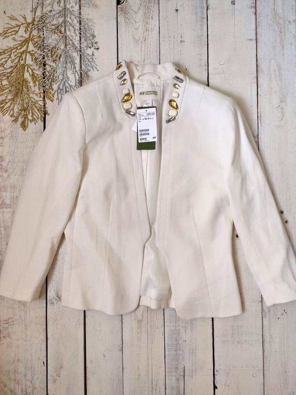 Новый пиджак из последней коллекции H&M размер S (по бирке 165/84А). Цена 770 грн. Длина по спинке – 53 см , длина рукава от ворота– 48 см , п/о груди по пройме – 40-42 см. Любые замеры по запросу. Все вещи в моем магазине Абсолютно НОВЫЕ, с бирками, куплены мной в фирменных магазинах Турции, Испании и Германии. Каждый сезон новая коллекция, заходите, всегда Вам очень-очень рада!!!