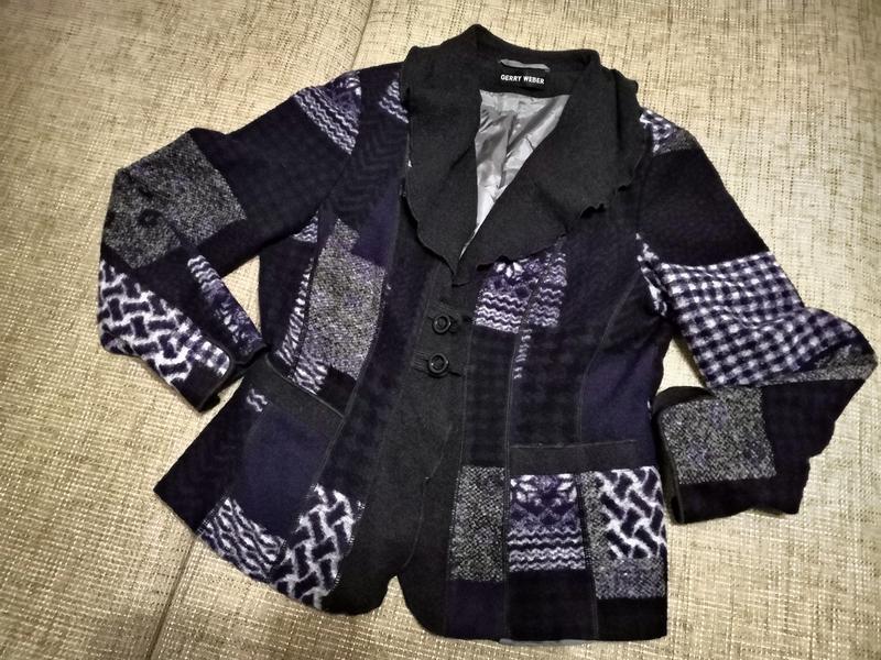 Размер EUR 42, длина 63, пог 54, плечи 44, плечо 12, рукав 60.5, бицепс 19, манжет 15, шерсть 18%