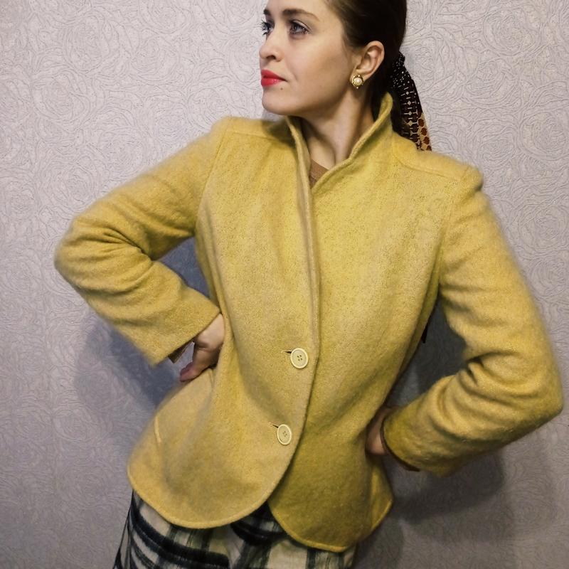 Вашему вниманию шикарный экспонат винтажный жакет из шерсти вроде мохера или ангоры. Нежный лимонный оттенок, отличное сохранение. Ранние Pierre Cardin! Есть возможность примерить накладным платежом с подпиской или безопасной оплатой от Шкафы.