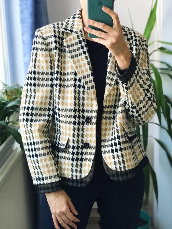 Шикарний вовняний жакет в гусячу лапку вінтаж uk 16 tuzzi італія німеччина в стилі шанель
