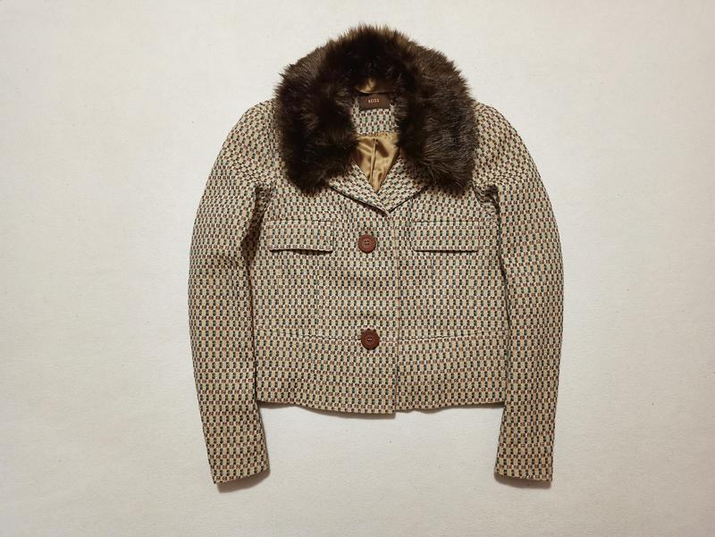 Короткий жакет с меховым воротником от английского бренда Reiss Воротник отстегивается Шикарная расцветка Размер М Длина изделия по спине 54 см Полу обхват груди 50 см Длина рукава 63 см Состав:83%шерсть,17%полиамид Состояние идеальное