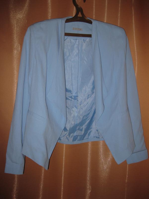 Шикарный Пиджак жакет сине-голубой S км0914 маленький размер, в офис на работу, в школу легкий летний пиджак накидка – нет застежек или пуговиц, красивый нежный освежающий цвет. указанный размер на изделии – S, смотрите фото, данные на бирках. Состояние идеальное– нет повреждений, нет разрывов, нет пятен, подмышки в идеальном состоянии -никаких следов, смотрите фото, если здесь не увеличивается –пришлю дополнительные по запросу. Есть два кармашка по бокам, еще не расшиты. Замеры: ширина плеч 40 см, ПО подмышки 50 см, ПО талия 44 см, длина изделия по спине 60 см, длина рукава 63 см. " Если Вас интересует какая-нибудь вещь, но есть сомнения или вопросы, то пишите. стараюсь всем ответить. смотрите все объявления. при покупке двух (сразу или в течение месяца) или более вещей возможны скидки до целых 20-50%!! АКЦИОННАЯ ДОСТАВКА + ✔✔✔ отправим любой службой доставки по Вашему выбору. !Для того чтобы была акция-доставку нужно оформить Вам на сайте через кнопку купить "
