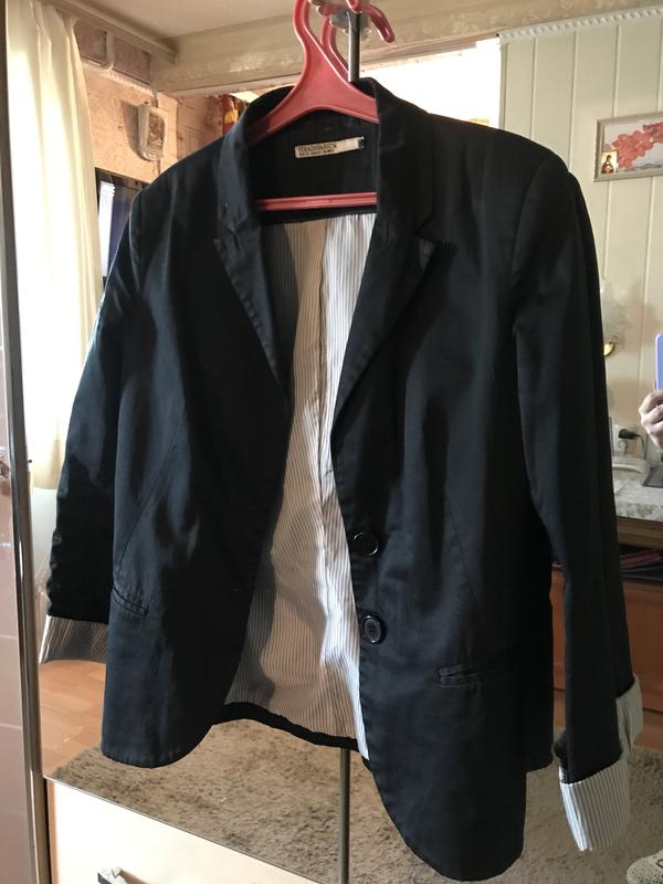 Стильный пиджак от Stradivarius Цвет-чёрный Размер s подойдёт и на м. Рукавчик можно отварачивать Фото на теле нет