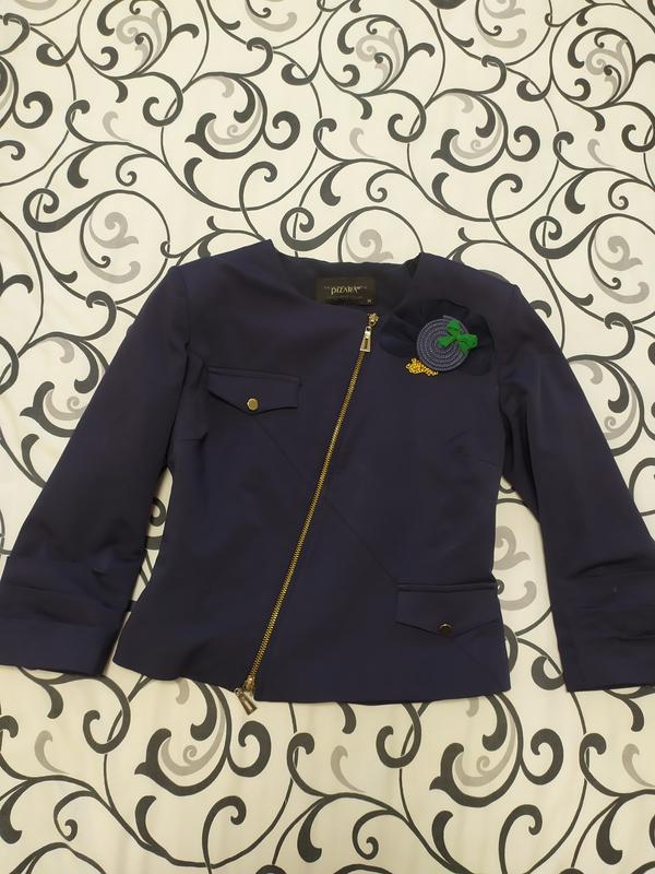 пиджак укороченный синий,,косая молния размер 38,36