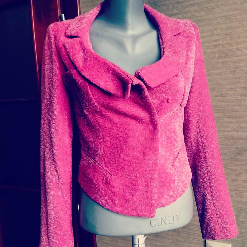 Яркий фактурный пиджак подчёркивающий фигуру и декольте