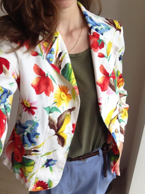 В НАЛИЧИИ Яркий хлопковый пиджак, Турция. Идеальный на лето. Замеры: Длина рукава: 60 см Длина: 53 см Плечи: 40 см ПОГ: 46 см ПОТ: 43 см Благодаря наличию в составе лайкры немного тянется. Юбка тоже в продаже. Смотрите все мои объявления, делаю скидку при покупке от 2 вещей!