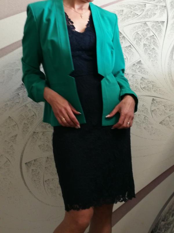 Дуже гарний піджачек красивого зеленого кольору, відливає не то синім не те блакитним. Стан нової речі. Розмір S