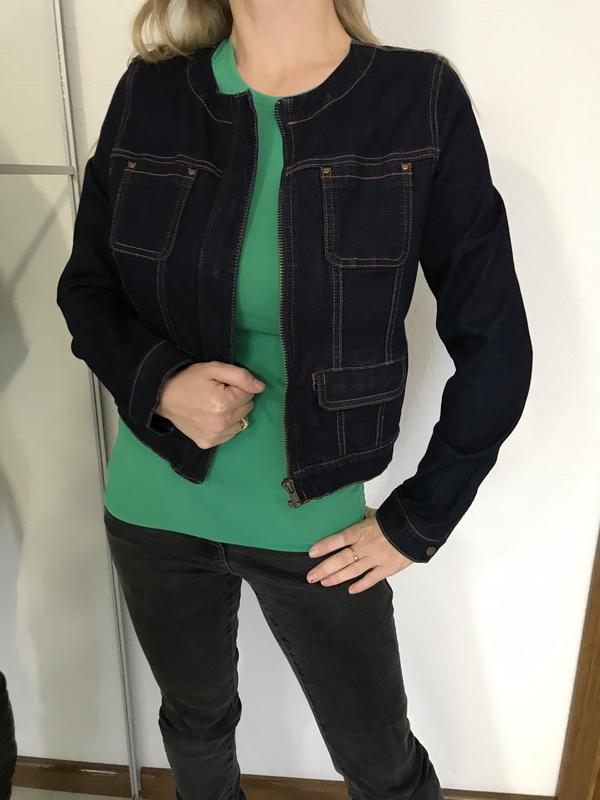 ‼️МЕГА-СКИДКИ до 50% на все вещи‼️+‼️КАЖДАЯ 3-я вещь в подарок‼️(наименьшая по стоимости) Смотрите другие мои объявления😉 Стильный джинсовый пиджак-куртка, качественный темно-синий джинс, на молнии, круглый воротничок-шанелька. Состояние нового. Размер М-Л. Замеры предоставлю по запросу.