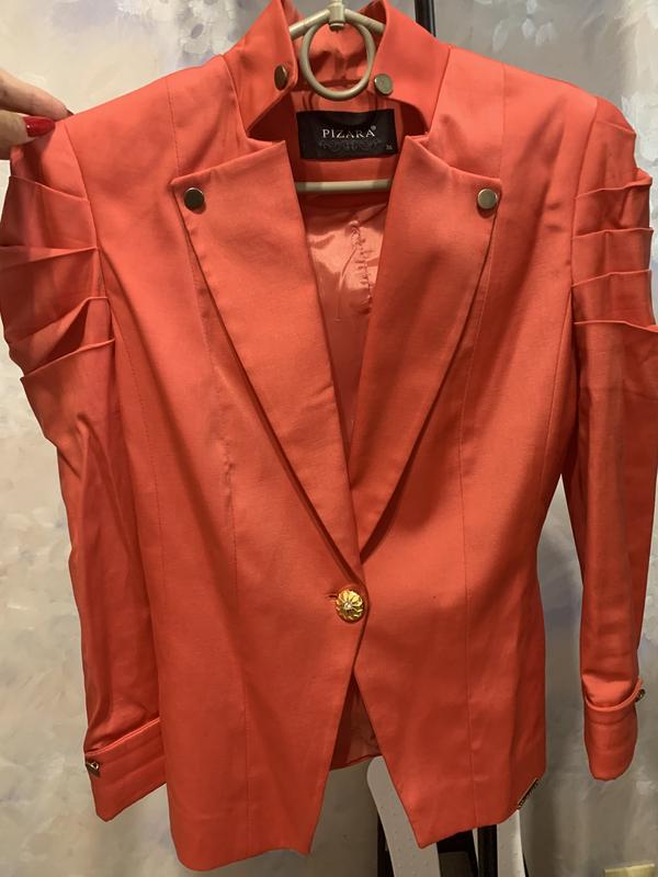 Пиджак с плечиками , кораллового цвета , размер хс , с