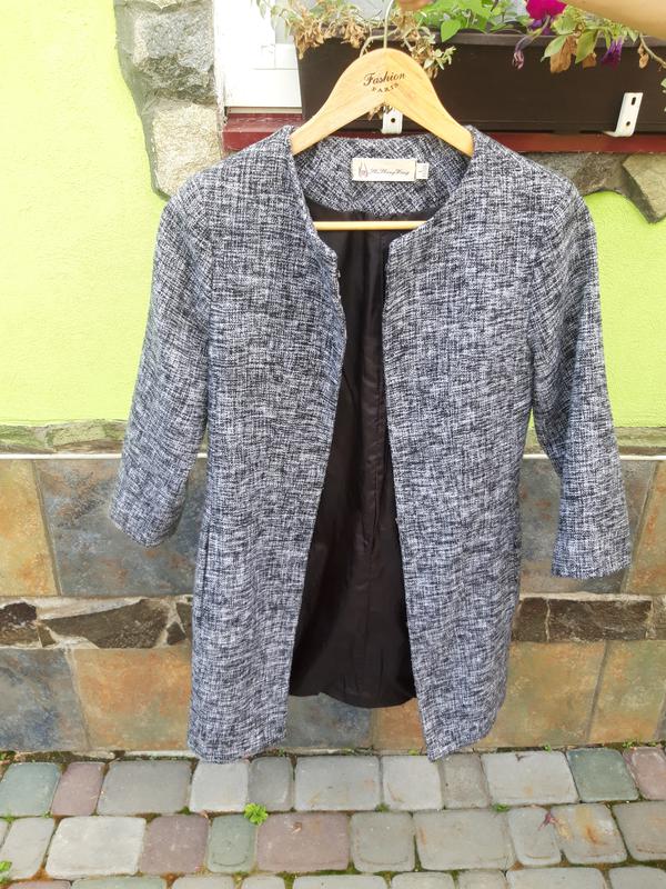 Твідовий піджак сірого кольру на бірці розмір L, але по факту S/M довжина -82, рукав - 45 см