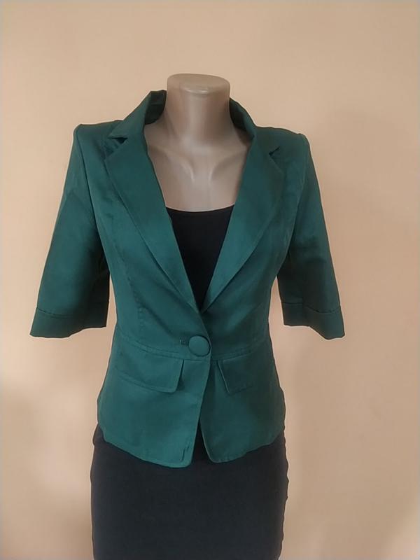 жакет смарагдового кольору плечі - 34см рукав - 34см довжина - 53см пог - 40,5см пот - 35см понизу - 40см без підкладки
