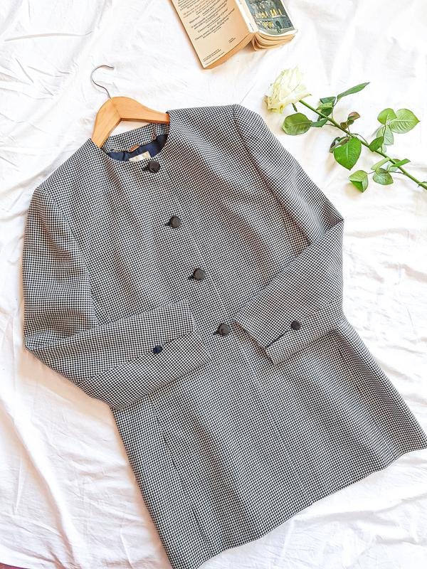 Жакет удлинённый viyella 100% шерсть клетчатый піджак классика винтаж