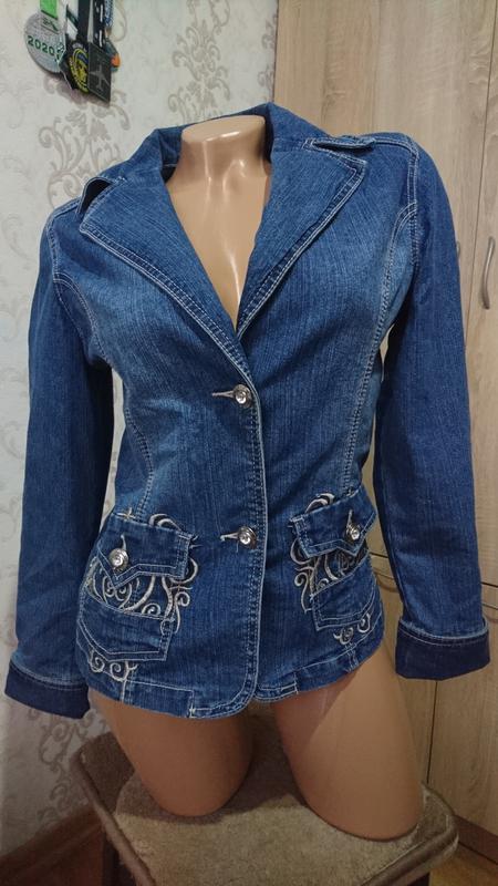 Джинсовка размер S, 95% хлопок и 5% эластан Замеры : длина изделия 56 см, рукав 58 см, полуобхват груди 45 см, полуобхват талии 39 см, полуобхват по низу изделия 43 см. Высылаю укрпочтой, новой почтой.