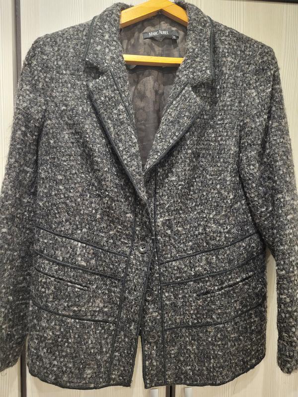 Жакет, піджак на підкладці від Marc Aurel. Marc Aurel - відомий німецький бренд, що випускає модний одяг для сучасних молодих жінок, що віддають перевагу елегантність і демократичність стилю casual. Маркування розміру 42 Німеччина Довжина по спинці - 62 см ПО грудях - 52 см Плечі - 41 см Довжина рукава - 60 см Тканина букле. Злегка приталений силует. Прорізні кишеньки, застібається на гудзики. Матеріали: 43% вовна, 17% віскоза, 15% альпака Стан відмінний, нове. Marc Aurel имеет свой индивидуальный и легко узнаваемый почерк. Дизайнеры бренда умело сочетают различные материалы и техники их обработки, тона и фактуры, избегая чрезмерной пестроты расцветки для достижения максимальной выразительности образов. Палитра тканей Marc Aurel богата на благородные пастельные, серебристые, жемчужные и нюдовые оттенки. Основу коллекций составляют натуральные ткани, такие как хлопок, лен, шелк и шерсть с небольшим добавлением синтетических волокон для большей прочности ткани.