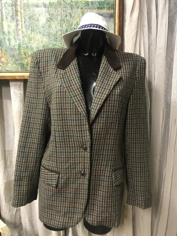 Красивый итальянский жакет из шерсти. Винтаж. Яркая клетка, ворот и пуговицы из коричневой ткани очень похожей на замшу. Состав:шерсть-100/. Размер по бирке-М. Замеры:длина-71 см, ПОГ-50 см, ПОТ-48 см, ПОБ-53 см, рукав-60 см. Следы времени видны только на подкладке(см. Последнее фото)