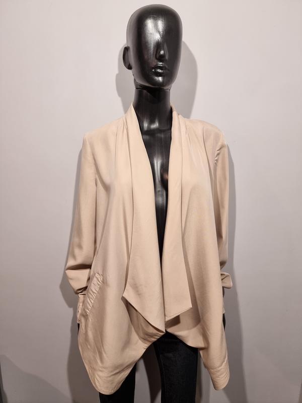 Превосходный жакет от Manoukian Состав: Модал 73% Полиестер 27% Очень качественный и приятный материал. Фасон на распах. Пояски на манжетах с пуговицами, которые можно убирать. Пуговицы пришиты, именно на поясках манжет. Замеры: ПОГ 50 ПОТ 47 ПОБ 47 ДЛИНА 73 РУКАВ 66 ПЛЕЧИ 40