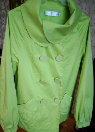 Котоновий легенький плащик на підкладці. Розмір ХС- С. Можу зробити заміри. Яскравий і гарний!
