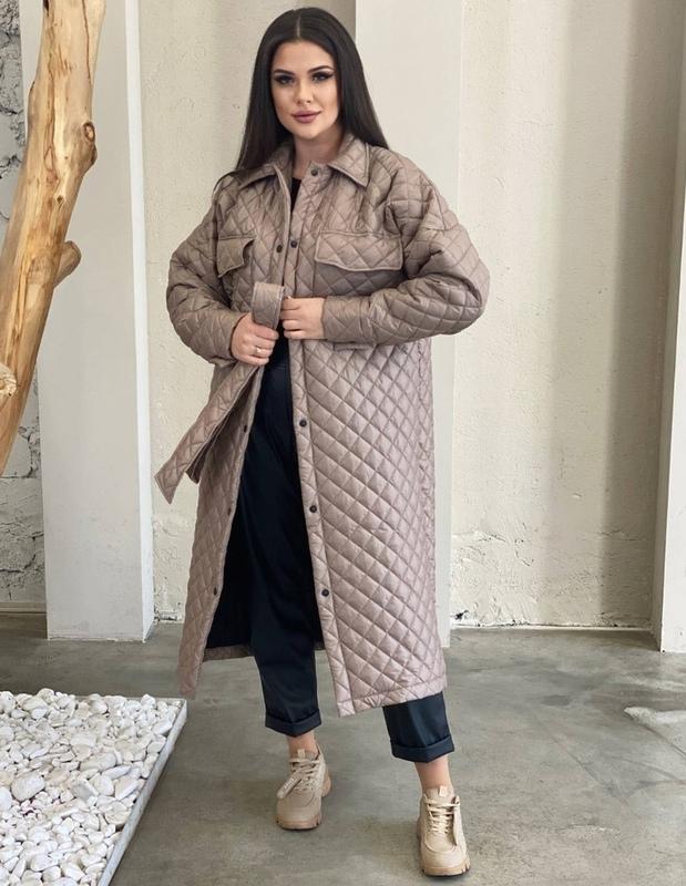 Колір: чорний, мокко, лаванда. Тканина: плащова Наповнення: синтепон 150 Довжина: по спинці - 115 см Довжина рукава: 49 см Розміри S-M, L-XL 01257